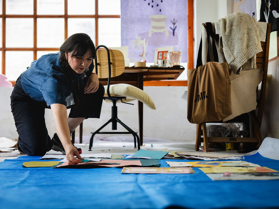 A Kőkönnyek című képeket például a köveskáli ház kapujában lévő hatalmas kővirágtartók ihlették és az újrahasznosított anyagokon túl, kurkumán növesztett kombucha biobőrt (bioműanyag) is használt a művész.